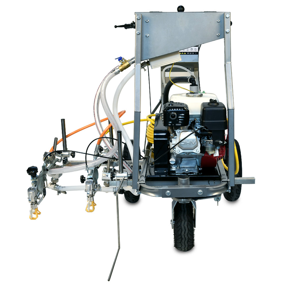 • мембранный насос для краски с бензиновым двигателем на колесной тележке;• шланг 15 метров для краски;