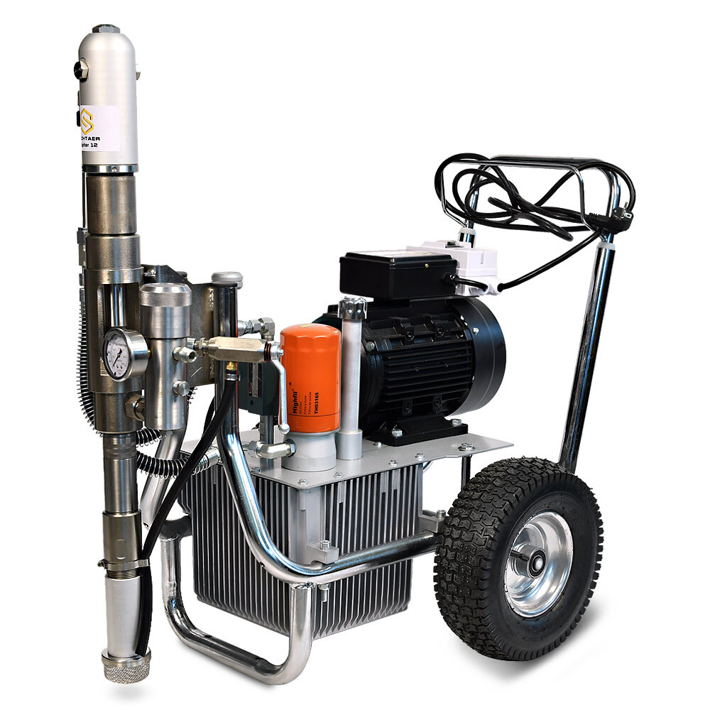 Schtaer Jupiter 12 — поршневой безвоздушный окрасочный аппарат. Он подходит для распыления высоковязких красок, огнезащитных составов, гидроизоляционных материалов, мастик, антикоррозионных красок, цинконаполненных материалов, шпатлевок, грунтов и других материалов, пригодных для нанесения через поршневой безвоздушный окрасочный агрегат. Применяется на строительных площадках при покраске стен, потолков, фасадов, металлических конструкций, крыш, бассейнов, куполов, металлических балок, заборов, мостов, тоннелей, а также для нанесения дорожной разметки при условии использовании дополнительного оборудования.