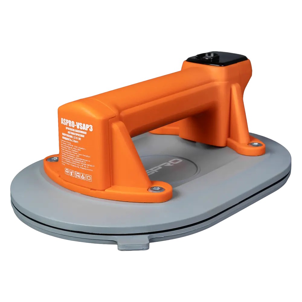 Автоматическая вакуумная присоска для подъема, перемещения и фиксации плитки. Овальное основание с резиновой чашей не оставляет черных следов. Сила вакуума до 220 кг
