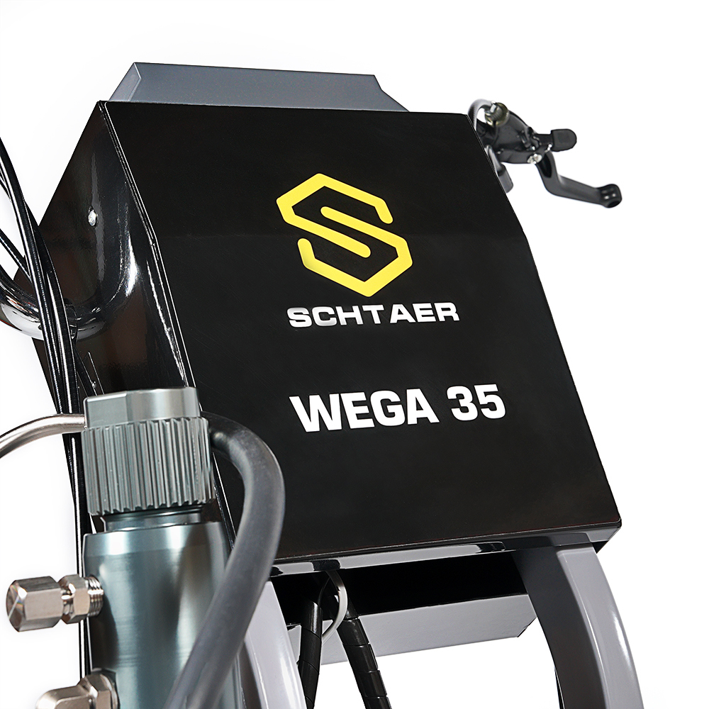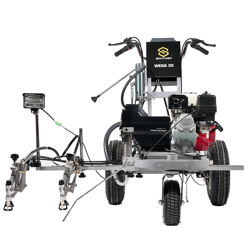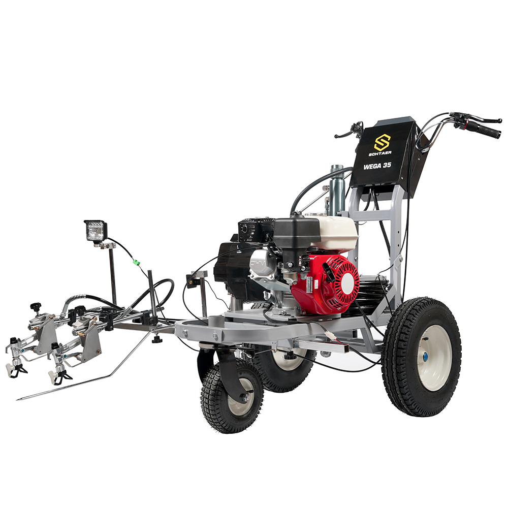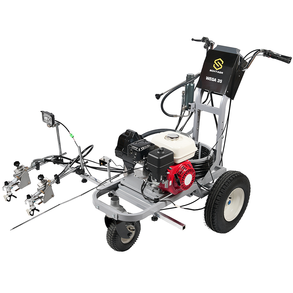 Schtaer Wega 35 - машина для распыления дорожной разметки краской. Разметочная машина с двумя краскопультоми предназначена для нанесения сплошных и прерывистых линий краской на дорогу, разметки пешеходников, нанесения дорожных знаков и надписей на дорогу, разметки парковок мест около магазинов и выставочных залов, разметки спортивных площадок и футбольных полей. Разметочную машину можно использовать только с краской, пригодной для безвоздушного распыления. Также машину можно использовать для разметки дорожных бордюров, мостовых конструкций, столбов фонарного освещения.