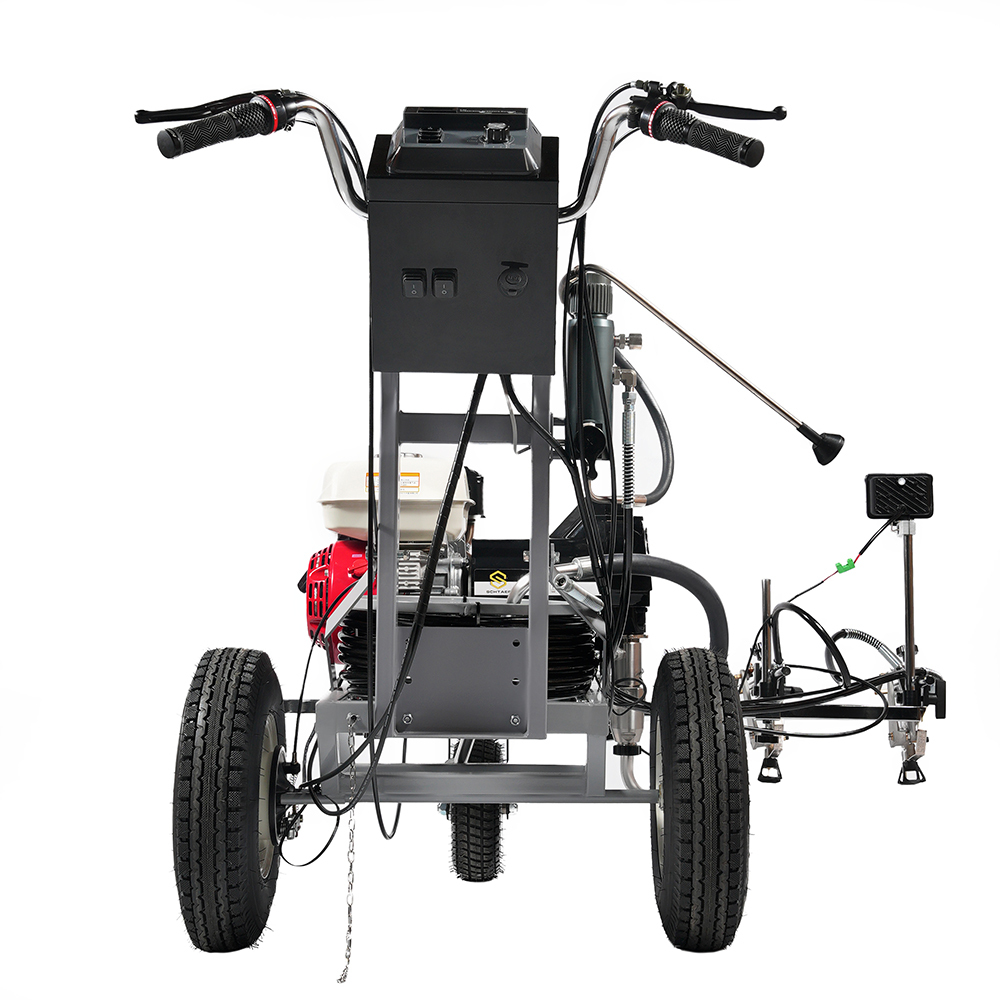 • высокая скорость дорожной разметки по сравнению с ручным нанесением кистью или валиком;• краскопульт на разметочной машине установлен на кронштейне, отсоединив его можно распылять краску безвоздушным пистолетом вручную в радиусе длины шланга;
