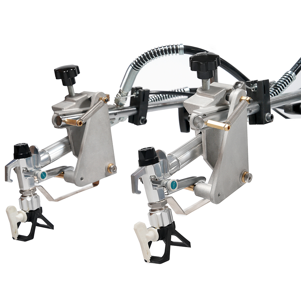 • краскопульт на разметочной машине установлен на кронштейне, отсоединив его можно распылять краску безвоздушным пистолетом вручную в радиусе длины шланга;