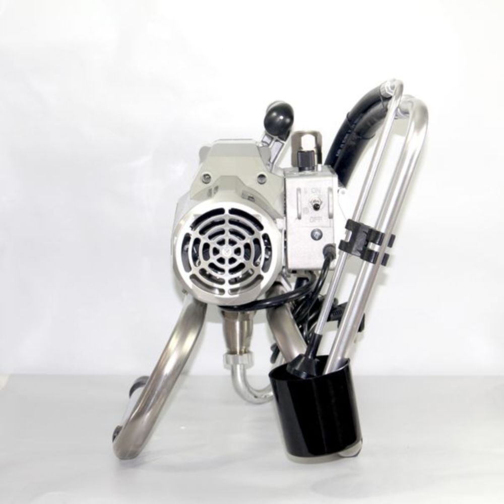 - Безвоздушный окрасочный аппарат с электрическим приводом мощностью 1300 ват, расход материала 2.3 литра в минуту.