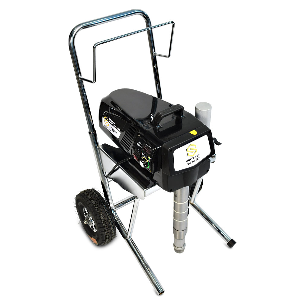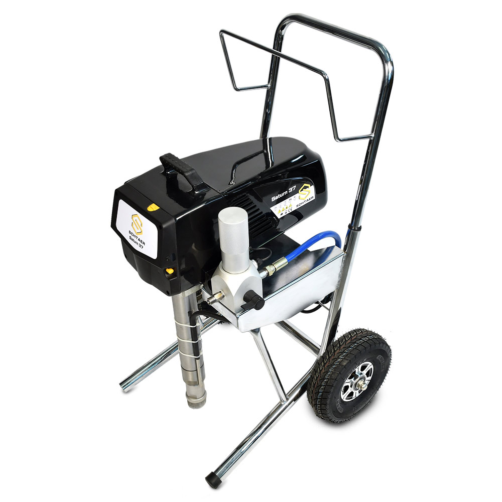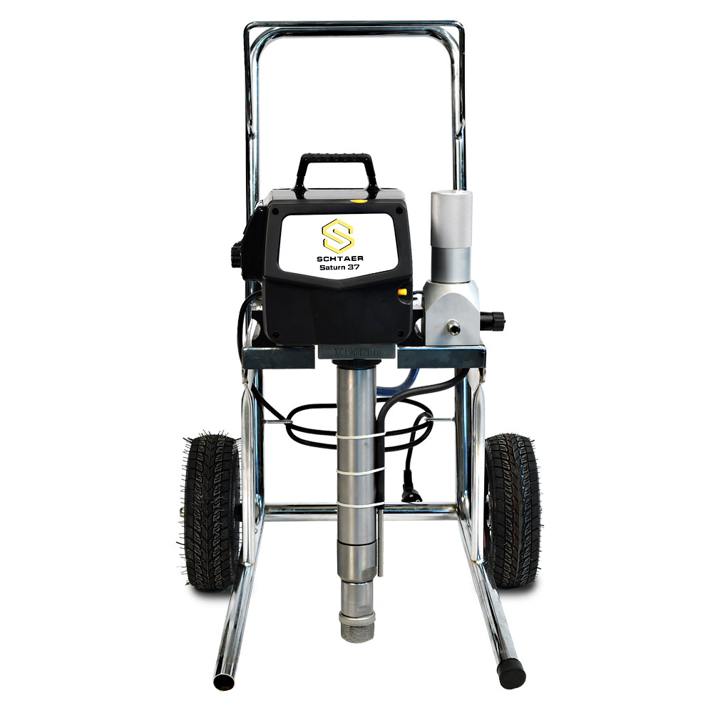 Schtaer Saturn 37 — покрасочный аппарат высокого давления для безвоздушного распыления вязких красок используется для работы на строительной площадке, покраски фасадов, стен и потолков, грунтовки и окраски металлоконструкций, покраски деревянных стен и заборов, нанесения огнезащитных красок на металлоконструкции, распыляемой безвоздушным способом шпатлевки, гидроизоляционных материалов, предназначенных для безвоздушного распыления. Поршневой окрасочный аппарат SATURN 37 забирает краску из ведра через прямой металлический заборник и подает ее по шлангу высокого давления на краскопульт высокого давления.Стандартная комплектация