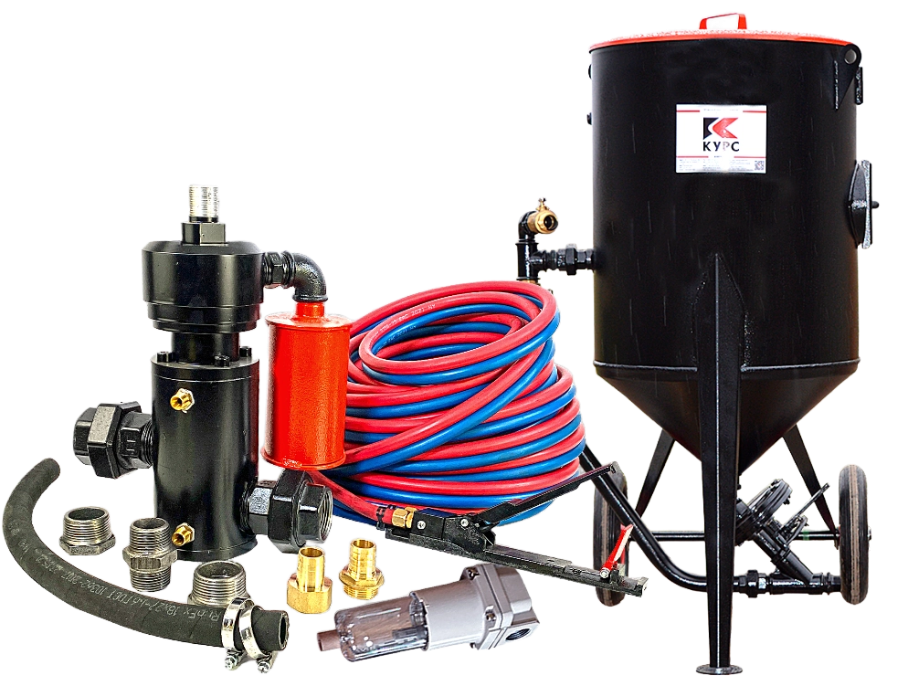 С пескоструйными «бочками» в начальной комплектации, с фильтром и с КПДУ мы рекомендуем использовать дозаторы для практичного дозирования расхода абразива двух типов: