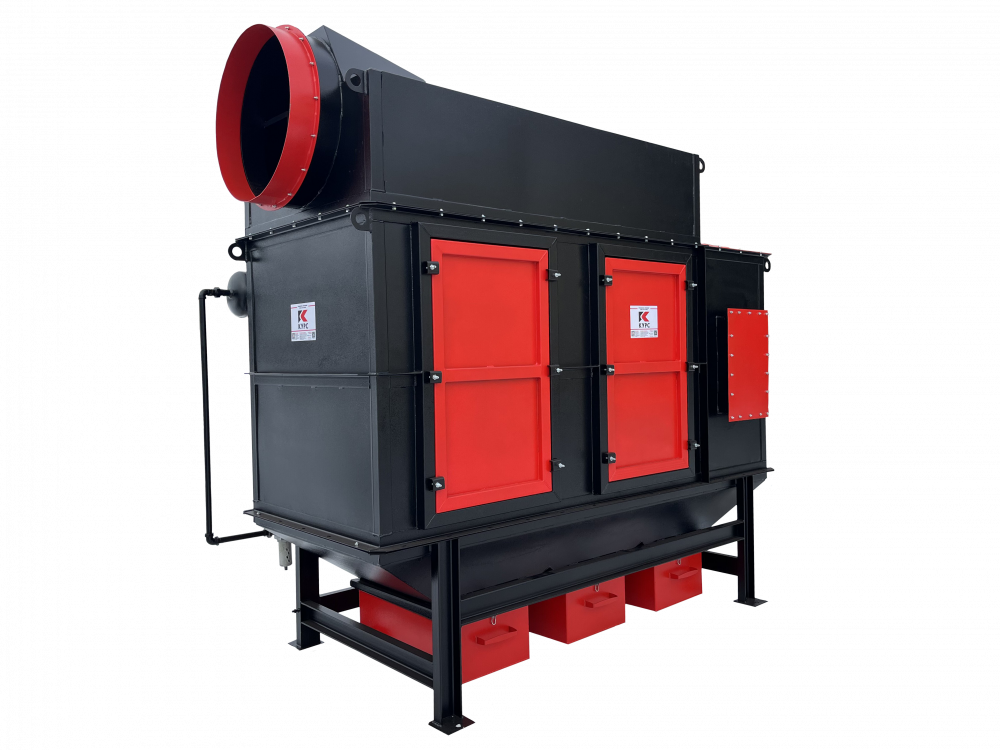 Корпус фильтра изготовлен из листовой стали и стального профиля. Нижняя часть фильтра имеет форму воронок и предназначена для сбора пылевых отходов, которые высыпаются в ящики и впоследствии утилизируются, как бытовые отходы. В центральной части расположены фильтрующие элементы, которые закреплены на специальном кронштейне. Их легко заменять через сервисную дверь на корпусе.