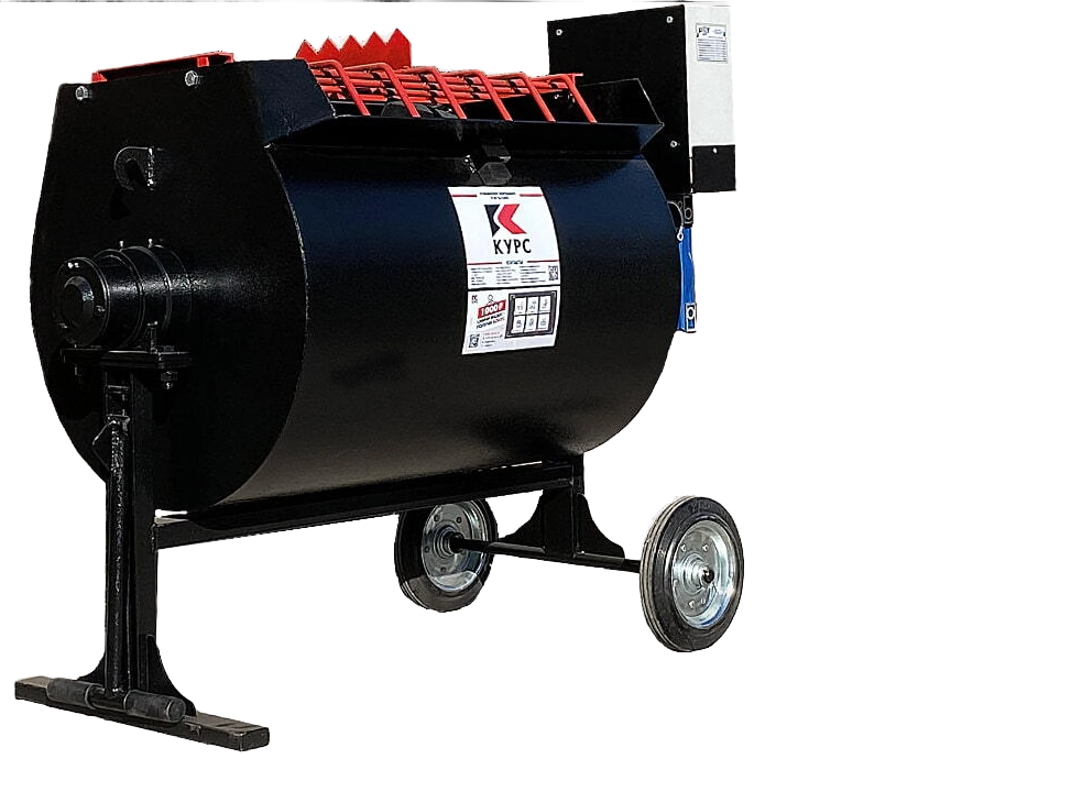 Корпус барабана растворосмесителя сварной, он оснащен оградительной решеткой, чтобы внутрь не попали посторонние предметы, и гребенкой, с помощью которой удобно вскрывать упаковки со смесью.