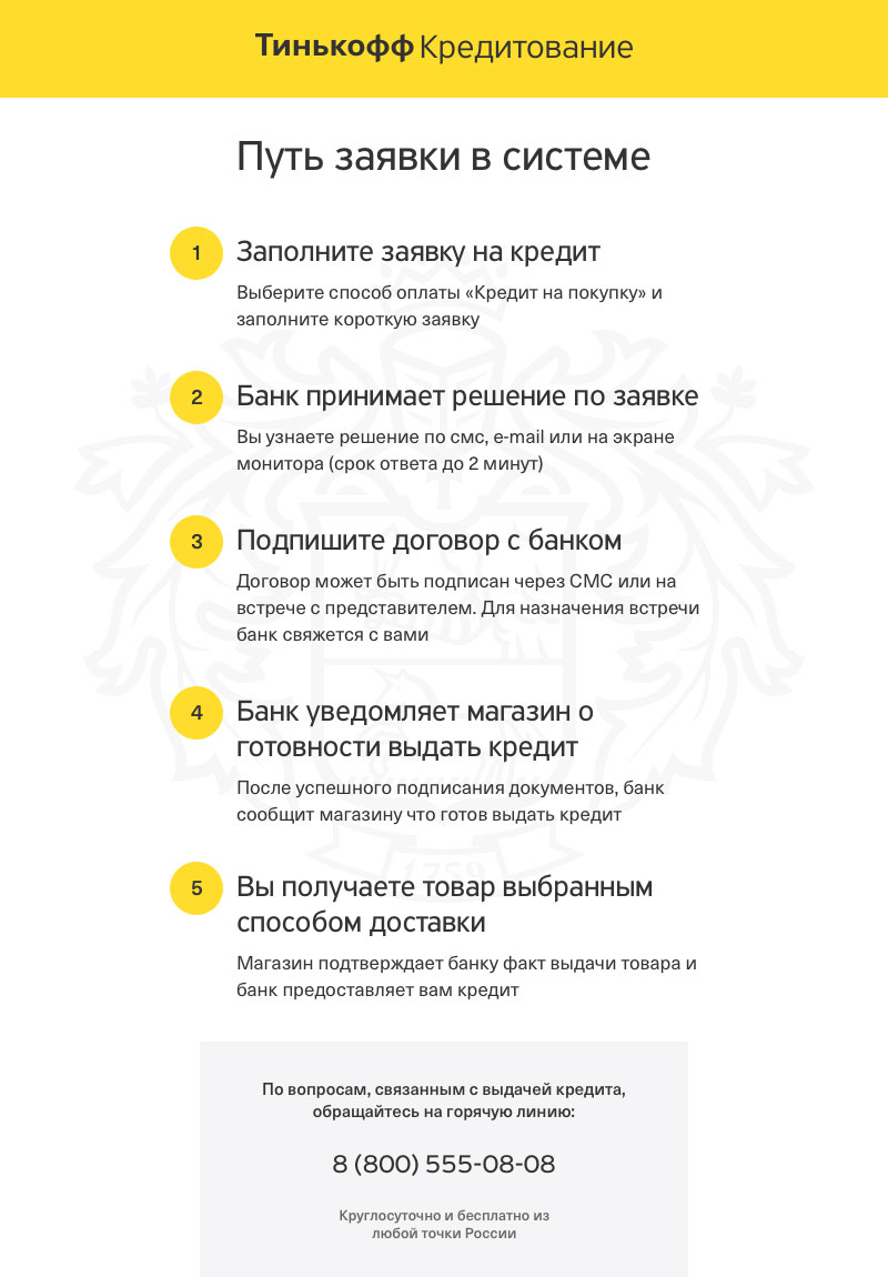 Вы можете оплатить наличными курьеру при доставке по г.Самара - Оплата через «КупиВкредит» («Тинькофф Банк»)